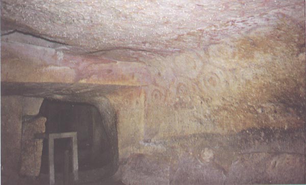 Instead, the ceiling of the chamber is decorated with a number of red ochre